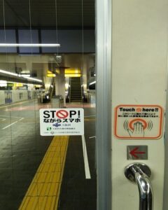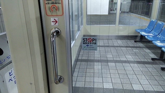 昨年、大阪府交通対策協議会に寄贈しました「STOPながらスマホ」のステッカーが地下鉄、モノレールなどの駅構内や改札口に貼られており、「ながら行為」の防止に向けた啓発活動の一助を担っています。